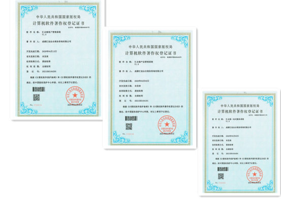 经过几年的发展沉淀,成都汇创众合科技有限公司自主申请获得多项自主知识产权: